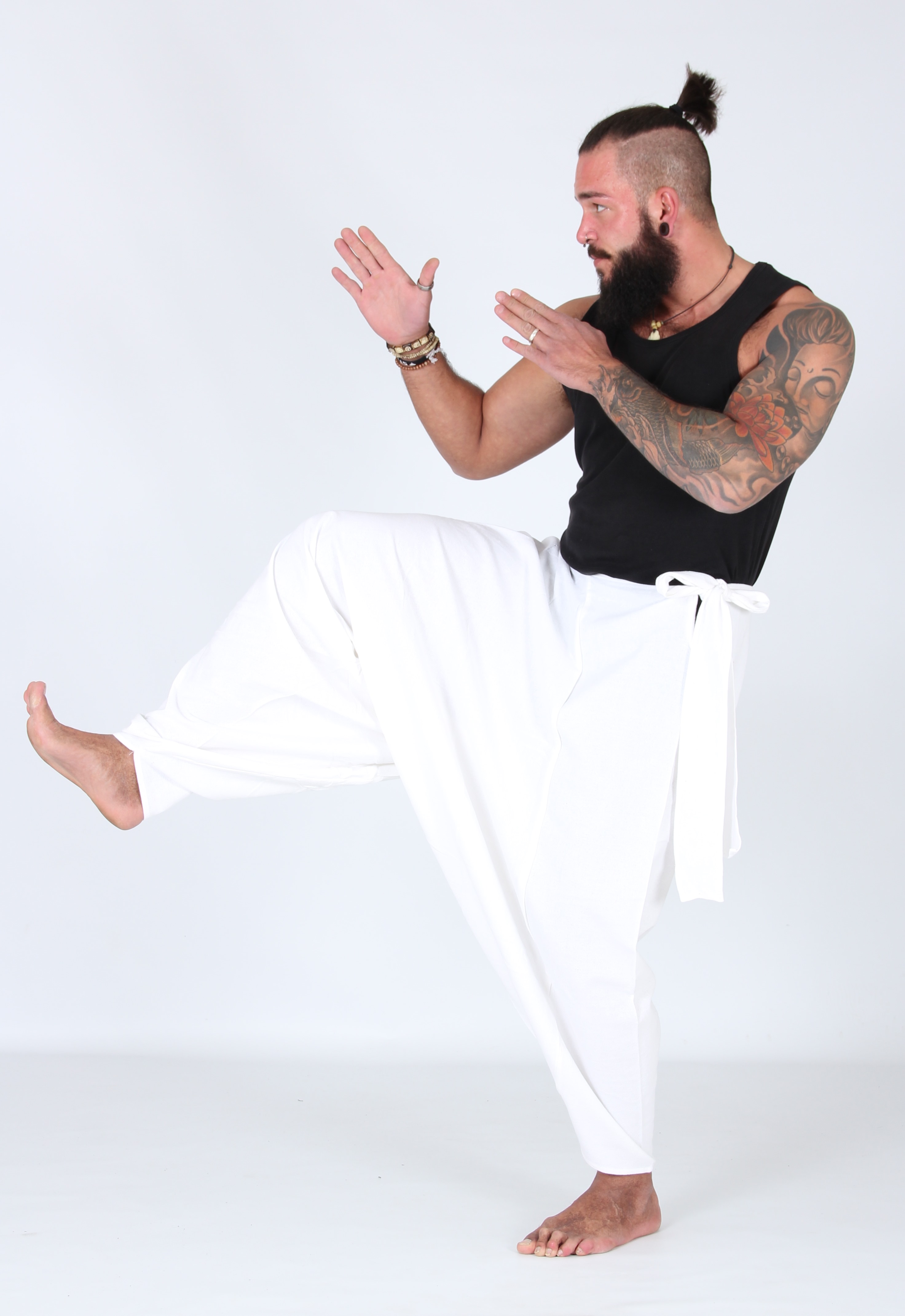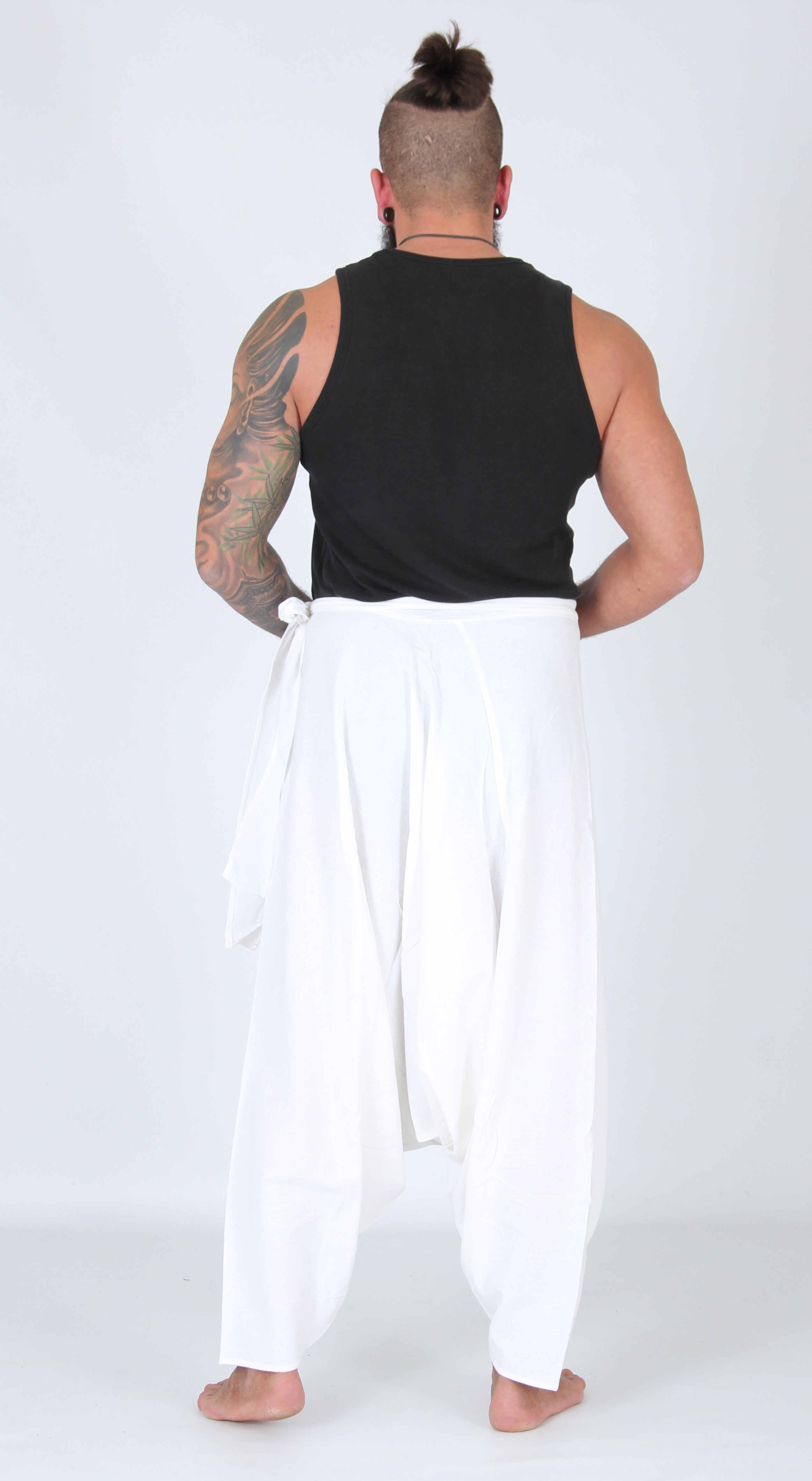 Die HMONG Pluderhose im Shalwar Schnitt benützt eine Wickeltechnick um die Bundweite den individuel entsprechenden Bedürfnissen anzupassen. Die Gesamtlänge der Hose läßt sich ebenfalls in der Höhe regulieren.